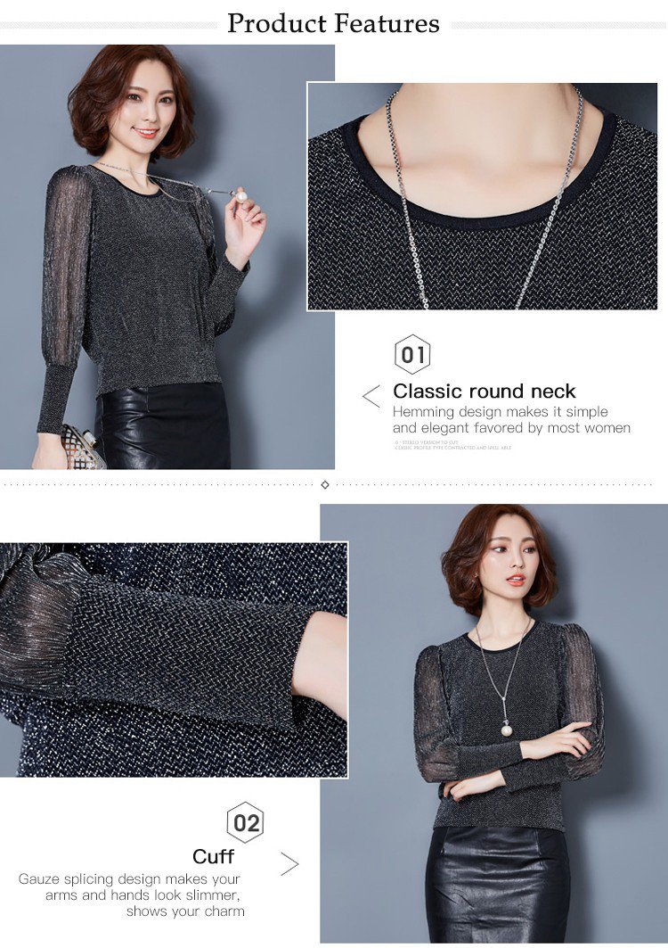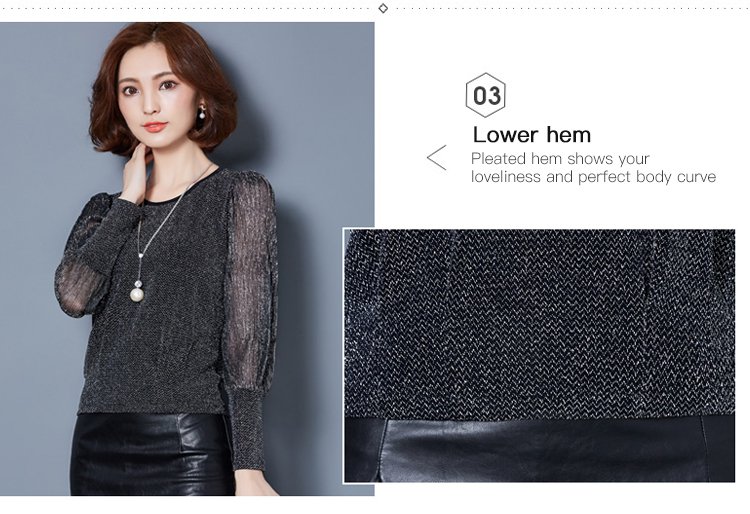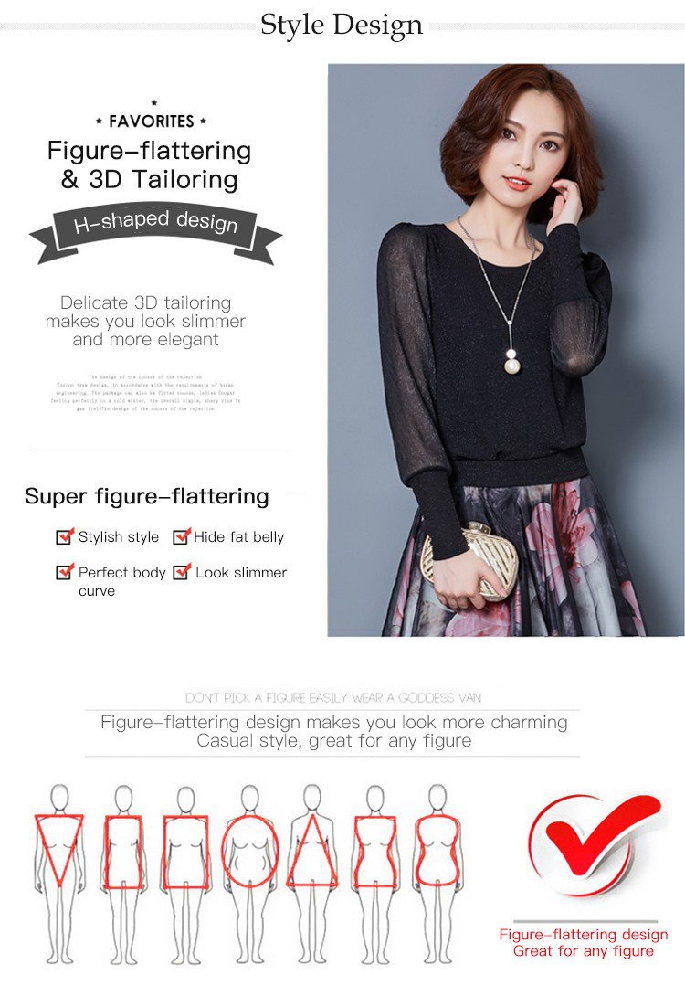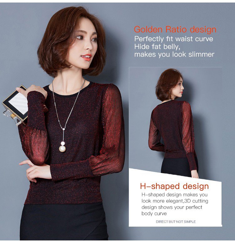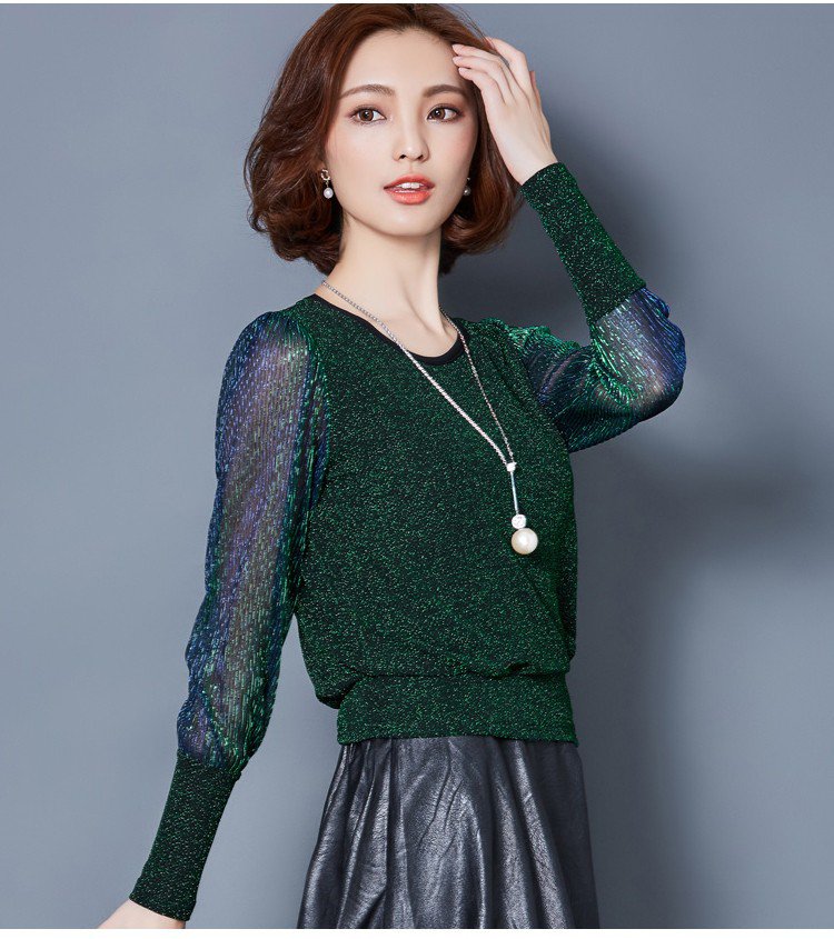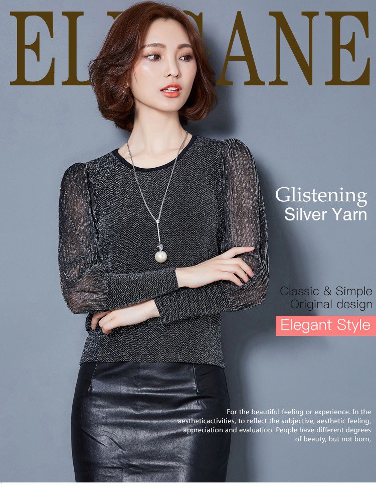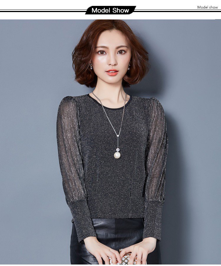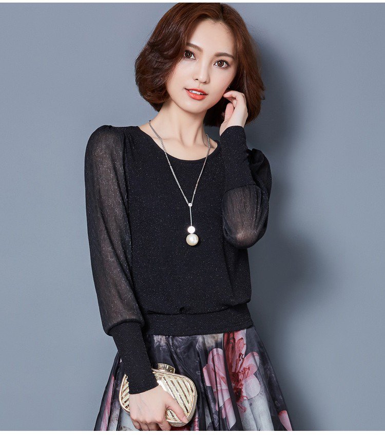 Simple figure-flattering gauze long sleeve blouse
